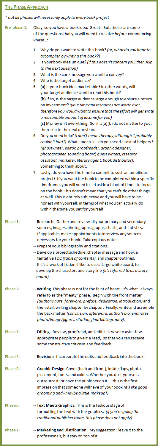 1. Prepare a statement of purpose for your book and, subsequently, for each chapter. This is also part of the “book hook” that will either attract or repel a potential publisher.